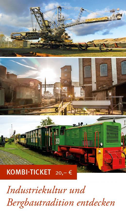 Sowohl das Kombi-Ticket als auch der Prospekt regen dazu an, sich auf Spuren der Braunkohle in Mitteldeutschland zu begeben. Für weitere Informationen zum Kombiticket bitte unten auf das Bild klicken.